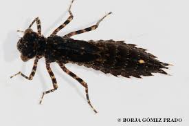 Larvas de libélula: son lo sterminator del agua, andan por las paredes del pozo pero también nadan a propulsión! A diferencia de otros insectos éstas no tienen que subir a la superficie para respirar, eso les da mucha ventaja a la ora de ser pacientes y atacar. Se comen cualquier animal menor o igual que su tamaño (y no son pequeñas!). Cuando llega el momento oportuno salen del agua y dejando la piel atras se combierten el elegantes libélulas.